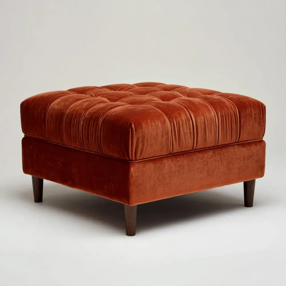 Velours-Hocker aus Holz 80x80x45 cm - Rostrot