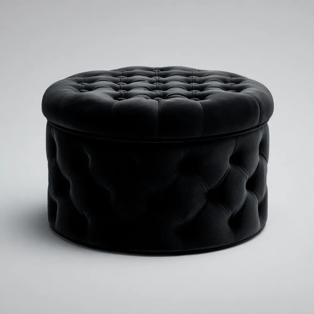 Runder Samt-Hocker mit Stauraum Schwarz