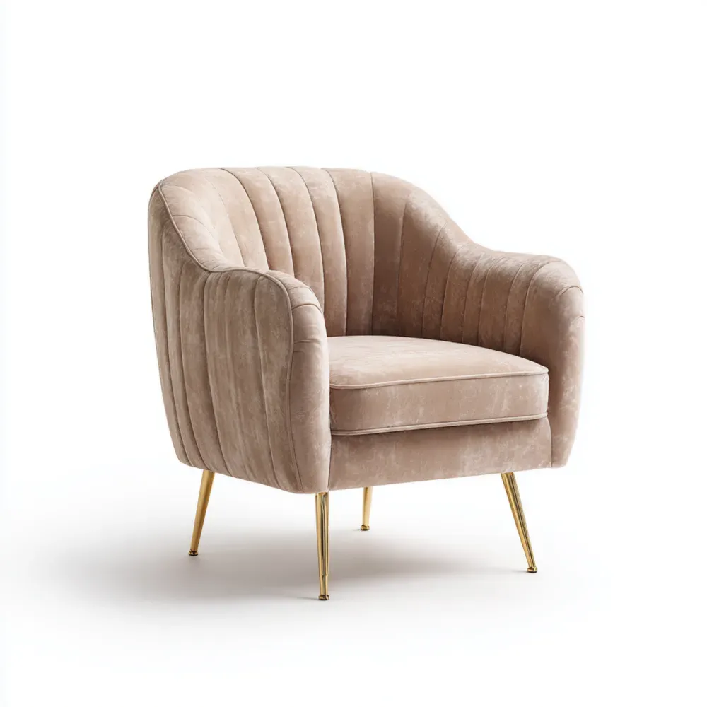 Sessel Samt Beige mit Metallbeinen